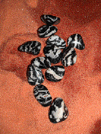 Written and compiled by - Patricia Jean Martin In celebration of the Autumnal Equinox, when day and night are of equal length, I bring to you Zebra Marble -- a most appropriate stone for the season. Half black and half white, Zebra Marble is as its name implies - a Marble whose rhythmic pattern resembles that of the zebra. Through its own image, this striking stone is all about balance. Like the Yin/Yang of Chinese philosophy, Zebra Marble also possesses balanced qualities of opposing, yet complimentary, forces. When combined, a dynamic equilibrium is reached, and we are then awakened to the prospect of eternity and how it relates to the turn of the Wheel. Yet another symbol of the two that are one. Bodily, Marble is a metamorphosed Limestone, meaning re-crystallized to contain a Calcite and/or Dolomite; the Zebra variety is dolomitic. The various colors and patterns associated with the various types of Marble are produced by additional impurities incorporated at time of development. Marble is originally created when countless billions of sea creatures' shells are heated, compacted, and transformed within the earth. Spiritually, many religious buildings, sculptures and artifacts have been constructed of Marble, as it was looked upon as a living stone. From Mabon to Samhain (or Ostara to Beltane in the Southern Hemisphere), the veil between the worlds begins to thin, and Marble of any kind can be an aid in connecting with our ancestors and the Old Ones. Zebra Marble, specifically, allows for a nice balance and keeps the connection and flow between here and there nicely opened. And for the mind, mystical and mundane knowledge is likely to come through this vibrant and animated stone. Because of its oceanic origins, Zebra Marble is a stone related to the directions of West and East, and carries all the Water and Air Element properties. It is also helpful in dream recall. Being a Water and Air Element stone, Zebra Marble is both grounding and ethereal at the same time - the deep dark black indicative of the mysterious ocean depths or Underworld, and the stark white indicative of the Celestial realm - creating an excellent balance between earth, sea and sky, catering to body, spirit and mind. Zebra Marble always shows both sides of any issue. This dualistic stone has the wonderful ability of bringing optimism when things look bleak. It is a happy stone with an enlightening quality, and can relieve sorrow. It reminds us that to every dark there is a light. In fact, the name Marble derives from the Latin "Marmar" taken from the Greek root "Marmarous" meaning "shining". This stone encourages a 'glass is half full' attitude. It helps us go beyond all that is superficial, and delves into the true character and nature of things. It allows us to recognize and acknowledge the spirit within, by teaching that the energies associated with love are boundless and eternal. This type of Marble bestows guidance on how to take control of our thoughts, and how to keep them pure. In doing this, it assists in the manifestation of our hopes, dreams and desires. Zebra Marble brings coveted clarity in its black and white representation of things; its lucid simplicity resulting in a peaceful serene feeling, thus enhancing a state of mind which provides for a more natural access to deeper states of meditation. It also aids in tantric practices. When used in tarot stone divination, Zebra Marble is often used to represent the Death card, signifying transitional endings to new beginnings. Those of us who use Zebra Marble will find ourselves increasingly equipped with heightened instinct and intuition, and thus a greater compassion for and understanding of the world around us. We will also find that this dualistic stone affords us both physical and emotional protection throughout the bleak winter months. In health related issues, Zebra Marble is good for aiding with disorders of the skeletal system and bone marrow. It is also said to be useful in fighting viral and bacterial infection, and in the easing of sore throats. Marble is soft and can be easily broken or, over a period of time, dissolved. With any of these beauties, care should be taken when cleansing the stone. A blessed Equinox to all! And may all your days be "marmarous"!